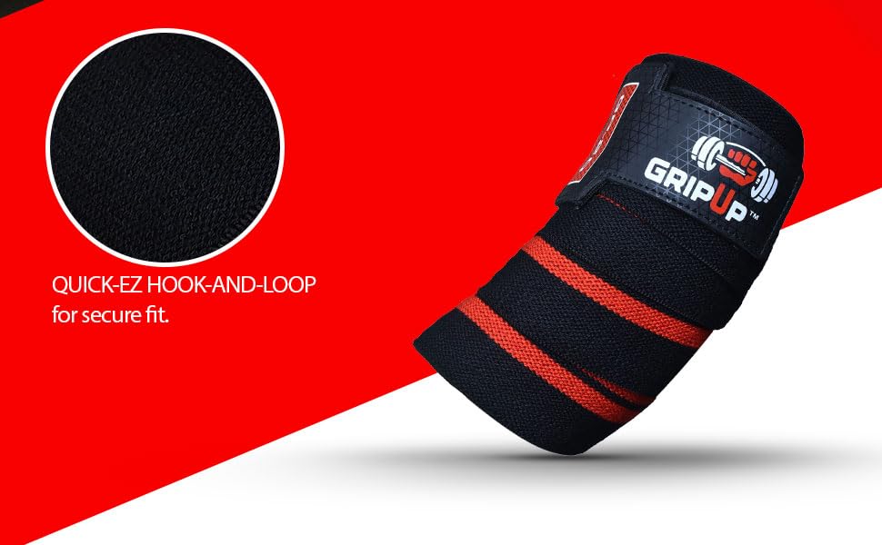 ✅ QUICK ONE-HAND WRAPPING: GripUp elbow wraps feature a strong hook-and-loop closure system for a secure, no-slip fit. The one-hand wrapping design makes adjustments fast and hassle-free, keeping you locked in and focused on your workout without interruptions.