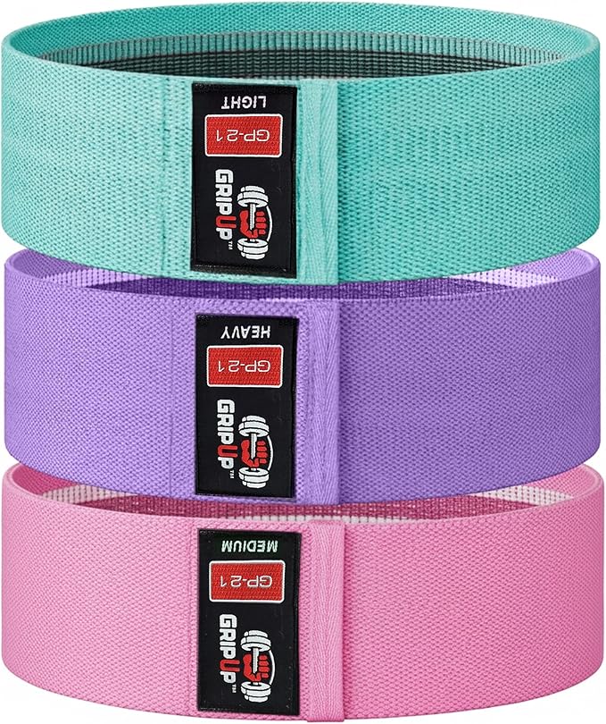 GripUp Resistance Bands for Women & Men – 3 Levels Heavy-Duty Fabric Bands for Legs, Set of 3