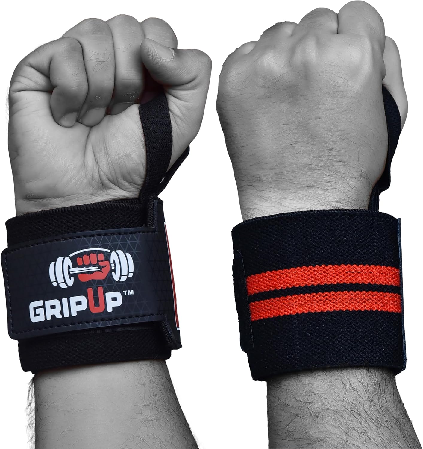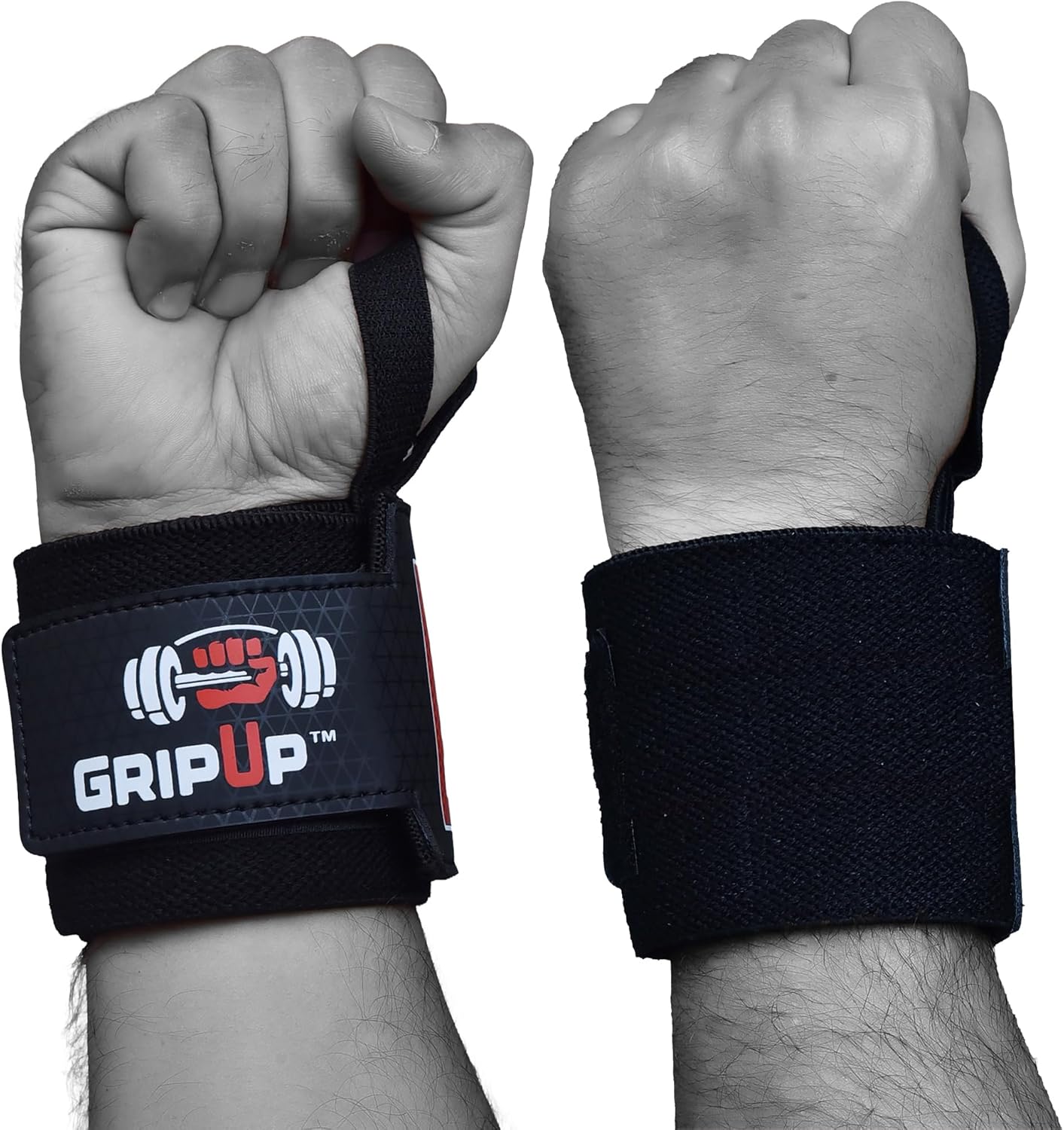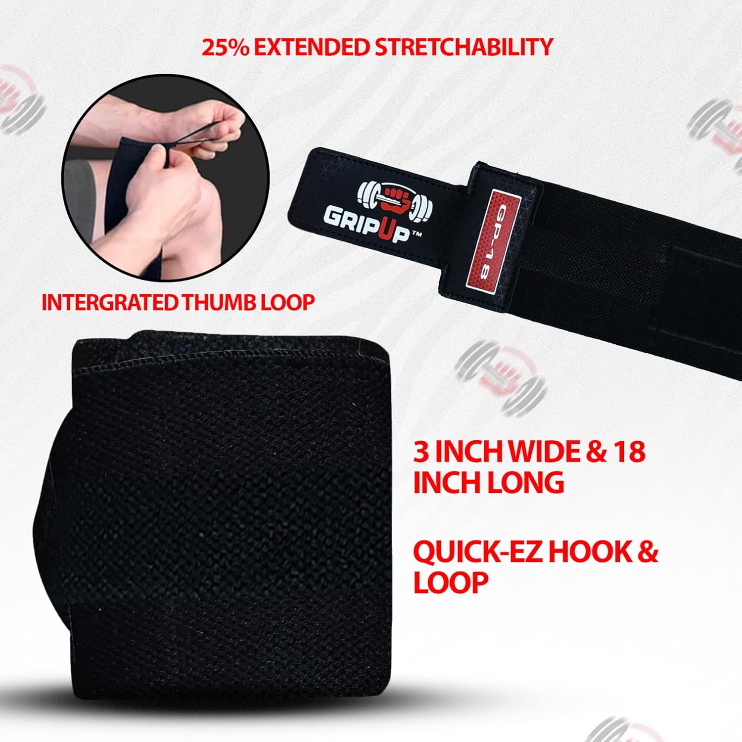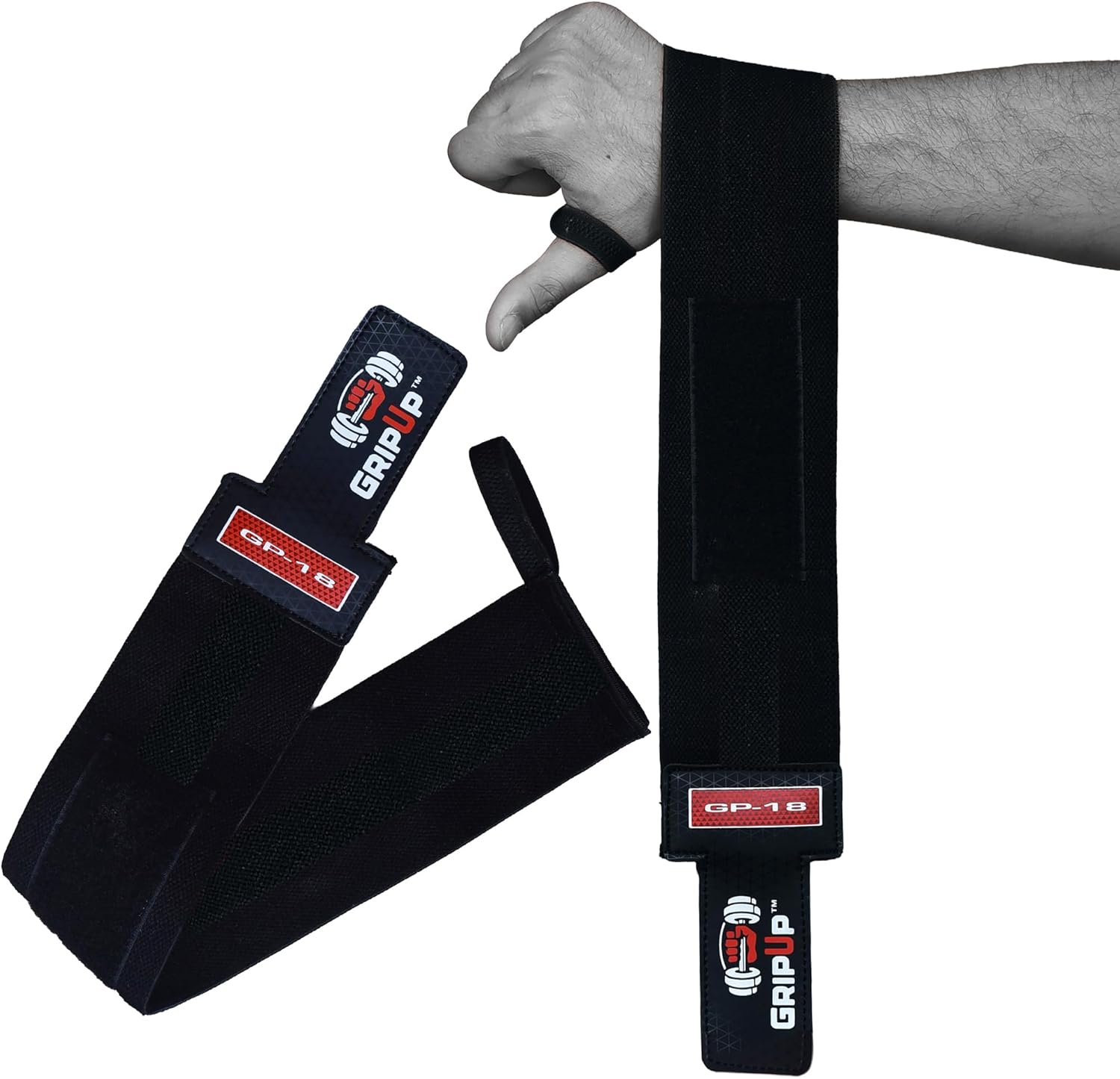 • ✅ 25% STRETCHABLE – 18” LONG WRAPS: GripUp wrist wraps provide a secure, customized fit for weightlifting and strength training. Measuring 18 inches in length, they wrap around the wrist multiple times for superior stability. Crafted from durable elasticated cotton, these wraps stretch up to 25%, allowing you to fine-tune compression and support to match your workout. Experience improved comfort, flexibility, and performance with every lift.